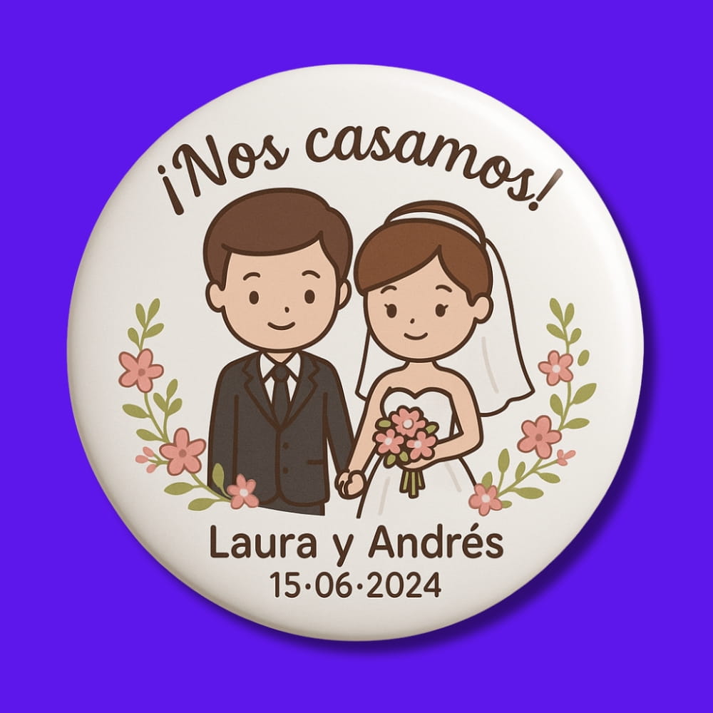 Celebra el amor con un detalle único y especial. Nuestras chapitas de matrimonio son el recuerdo perfecto para invitados, amigos y familiares en ese día tan especial.