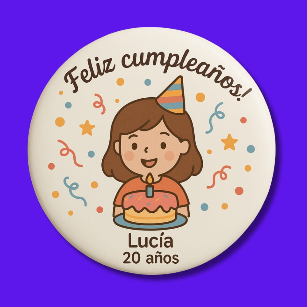 ¡Dale un toque único y divertido a tu celebración con nuestras chapitas personalizadas de cumpleaños! Perfectas como recuerdo para los invitados o para destacar al cumpleañero o cumpleañera, estas chapitas están diseñadas con colores vibrantes, personajes, frases festivas y totalmente personalizables según la temática del evento.